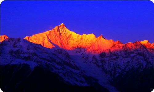 早起后在飛來寺看梅里雪山的日出日照金山,早餐后,驅(qū)車從飛來寺出發(fā),經(jīng)過瀾滄江大橋, 一個小時左右將到達明永村。從明永村開始徒步地球上罕見的低緯度、低海拔的明永冰川。按本地居名的說法:這是座神山,上冰川朝圣必須步行上山以示心誠,但明永冰川實在是險峻無比,因此上明永冰川需要借藏民的幫助用騾子和馬牲口載上去(只能載一程路,徒步來回四到五個小時)。回奔子欄住宿。住:奔子欄標準間。
