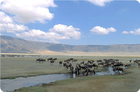 自然保護(hù)區(qū)位于坦桑尼亞中北部,1979年被聯(lián)合國(guó)教科文組織宣布為世界自然遺產(chǎn)。保護(hù)區(qū)的核心是世界聞名的恩戈羅戈羅火山口,有天然動(dòng)物園及世界第八大奇景的美稱(chēng),火山口方圓250 平方公里,600米深,是完整的火山口,也是世界第二大的火山口,型如鑲嵌在東非大裂谷帶上的一只“大盆”。每當(dāng)春天來(lái)臨之際,成千上萬(wàn)的火烈鳥(niǎo)地聚集在火山口底部的咸水湖上,宛如玫瑰色地薄紗,火烈鳥(niǎo)翩翩起舞,與火山口內(nèi)生長(zhǎng)的各種花卉、植物互相映襯,使恩戈羅戈羅被譽(yù)為“非洲伊甸園”。