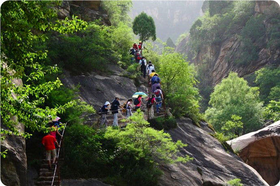 一塊塊巨石形態(tài)各異,或豎于高崖之上,令人望之膽顫,或斜依山坡呈現(xiàn)欲墜之態(tài),或伏于谷地如牛似犀;天泉之水蜿蜒谷中,輕歌細語,飛入那美麗的天池;聞濤谷山巒俊秀,古藤交錯;情人谷清幽靜雅,鳥語花香。峽谷中戲水漫游,時而峰回路轉(zhuǎn),時而曲徑通幽,更有其花異草,高山流水,仿佛讓你置身于世外桃源。正如古人所云:“重重疊疊山,高高低低樹,叮叮咚咚泉,曲曲折折路。”天池峽谷三季有花,四季有景。春賞山花浪漫,夏觀飛瀑流泉,秋采果實累累,冬覓冰瀑神奇。大自然鬼斧神工,雕鑿出天池峽谷這一人間勝境。
