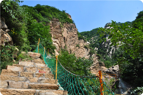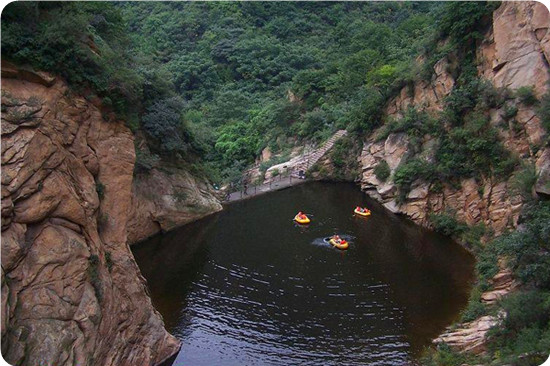 天池峽谷位于北京市懷柔區(qū)懷北鎮(zhèn)上黃土梁48號,距市區(qū)76千米,是一處山清水秀,鳥語花香的風(fēng)景峽谷。峽谷以水秀、濤聲、谷幽、峰奇為特色。霞松嶺林蔭樹茂,嶺奇路險;聞濤谷天池溪水潺潺,四季長流。奇妙的天池紫菲,一弘秀水映百丈絕壁,令人贊嘆流連。數(shù)條溪流順水而下,匯成1000多平方米的天池,分外清澈明凈;林聲、水聲、風(fēng)聲匯成濤聲陣陣;峽谷之幽正如“蟬噪林愈靜,鳥鳴山更幽”所描繪;神駝峰、八戒背嬌娘、福從天降、蓮藕雙生等奇峰林立。