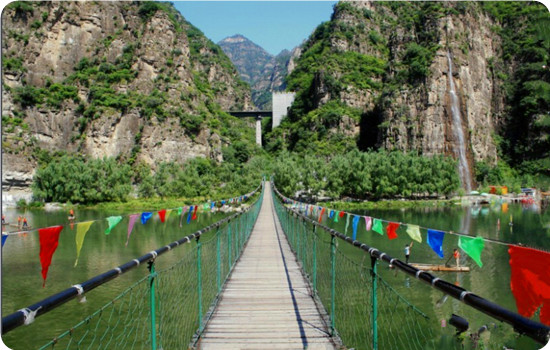 東湖港風景區(qū)位于北京房山世界地質(zhì)公園十渡園區(qū)十五渡,與野三坡毗鄰距市區(qū)106公里。景區(qū)內(nèi)翠綠的檀林,蜿蜒的千年古藤遍布整個峽谷,蜿蜒小道曲折而上,潺潺小溪足下流淌,頗具詩意。奇特的“三疊瀑布”落差115米,自女兒泉急流直下,水霧隨風飄落,如銀河般掛在峭壁上。有“登云梯而覽群山”之勢。這里以瀑高、潭多而享有盛名,素有“幽谷疊瀑、檀林氧吧”的美譽。另有夫妻峰、元陽峰、東湖巨佛、石刻畫廊、嫦娥伴金蟬、觀音洞等十余處景觀。東湖港風景區(qū)是AAAA級景區(qū)。