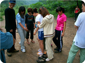 客戶名稱:北京國(guó)道黃金有限公司 活動(dòng)時(shí)間:2011年8月 活動(dòng)人數(shù):27人 活動(dòng)地點(diǎn)及形式:延慶后河峽谷—重裝野外徒步穿越 活動(dòng)項(xiàng)目:T字之謎 中流砥柱 解手鏈 諾亞方舟 鉆木取火 活動(dòng)描述:由北京國(guó)道黃金有限公司組織,天地之美戶外拓展訓(xùn)練公司承辦,在北京延慶后河峽谷展開了兩天一夜的重裝野外徒步穿越,在活動(dòng)中一個(gè)完美的團(tuán)隊(duì)都會(huì)以團(tuán)結(jié)為核心思想。在面對(duì)各種困難和挑戰(zhàn)時(shí),團(tuán)隊(duì)的凝聚力、相互關(guān)心、激勵(lì)、包容、無形中使團(tuán)隊(duì)更加團(tuán)結(jié)。 |