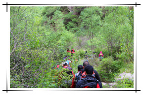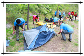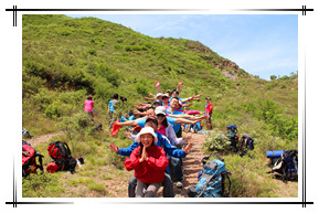 活動(dòng)時(shí)間:2012年5月 活動(dòng)人數(shù):65人 活動(dòng)地點(diǎn)及形式:后河徒步登山野外露營(yíng) 活動(dòng)項(xiàng)目:T字之謎,中流砥柱,龍行天下 活動(dòng)描述:由聯(lián)合利華組織,天地之美戶外拓展訓(xùn)練公司定制,在北京延慶的后河峽谷進(jìn)行了中高強(qiáng)度的徒步登山拉練活動(dòng),體驗(yàn)了野外露營(yíng)的樂(lè)趣。應(yīng)客戶的需求,量身定制本次活動(dòng)路線及各項(xiàng)活動(dòng)細(xì)節(jié),如只在第一天背負(fù)露營(yíng)裝備作為體驗(yàn)與拉練,第二天不再負(fù)重行進(jìn)等。創(chuàng)意團(tuán)隊(duì)總是充滿了創(chuàng)作的激情,各種造型的合影創(chuàng)意層出不窮,兩天的活動(dòng)一直伴隨著歡聲與笑語(yǔ),使員工們的身心得到了徹底的放松,從工作壓力中解脫出來(lái)。 |