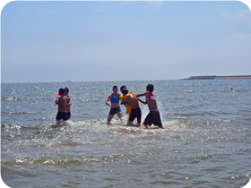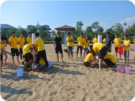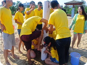 客戶名稱:鑫富匯通金融投資集團(tuán) 活動(dòng)時(shí)間:2015年9月 活動(dòng)人數(shù):28人 活動(dòng)地點(diǎn)及形式:河北秦皇島—海邊拓展 活動(dòng)項(xiàng)目:搶灘登陸 扎筏求渡 羅馬炮架 撕名牌 活動(dòng)描述:由鑫富匯通金融投資集團(tuán)組織,天地之美戶外拓展訓(xùn)練公司承辦,在河北秦皇島展開了一天的海邊拓展活動(dòng),在活動(dòng)中我們已經(jīng)沒有了組別界限、沒有了男女界限,已經(jīng)不是一個(gè)個(gè)獨(dú)立的人,而是由許多個(gè)人組成的一個(gè)堅(jiān)不可摧的團(tuán)隊(duì),真真切切體會(huì)到了“團(tuán)隊(duì)可以創(chuàng)造奇跡” |
