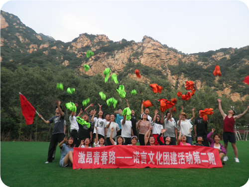 活動描述:由北京世紀諾言文化傳播中心組織,天地之美戶外拓展訓練公司承辦,在懷柔石門山風景區(qū)開展了一天的戶外拓展培訓活動,這次拓展訓練讓大家記憶深刻,通過這次的戶外拓展培訓,讓大家看到了不怕苦不怕痛,真誠相助,那份勇氣,那份感動,那份堅持,都是我們最強有力的動力!我愛我的家人!